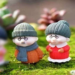 Sold out - Grandparents in woolens plastic miniature garden toys (Green Cap) - 1 Pair(1)