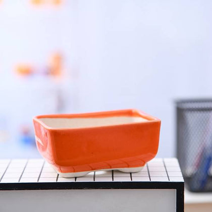 3.8 Inch (10 cm) Bonsai Rectangle Ceramic Pot (Orange) - Set of 3