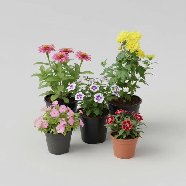 Transform your garden or indoor space with our 'Beautiful Flowers of the Season' collection. This vibrant assortment features a variety of stunning plants, including Dianthus, Zinnia, Salvia splendens, Torenia, and Petunia. Each plant is carefully selected for its beauty and resilience, making it perfect for both novice and experienced gardeners.
