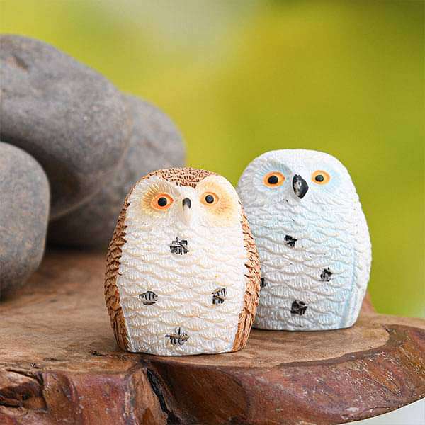 Owls Plastic Miniature Garden Toys (White) - 1 Pair