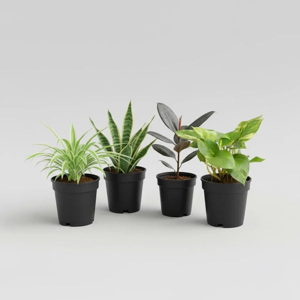 Celebrate World Environment Day with our exclusive 4 Plants Pack, designed to bring a touch of nature into your home while promoting a greener planet. This thoughtfully curated collection includes four popular houseplants: the Chlorophytum (Spider Plant), Sansevieria trifasciata Hahnii (Snake Plant), Rubber Plant (Ficus elastica), and Money Plant (Scindapsus). Each plant comes in a stylish 4-inch pot, making them perfect for any space.